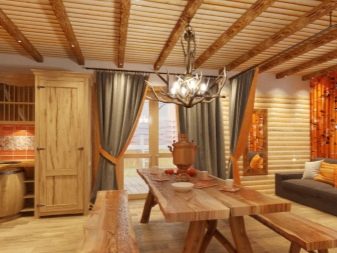In the interior of a Russian-style bath there is a minimum number of decorative items. It has only the most necessary.