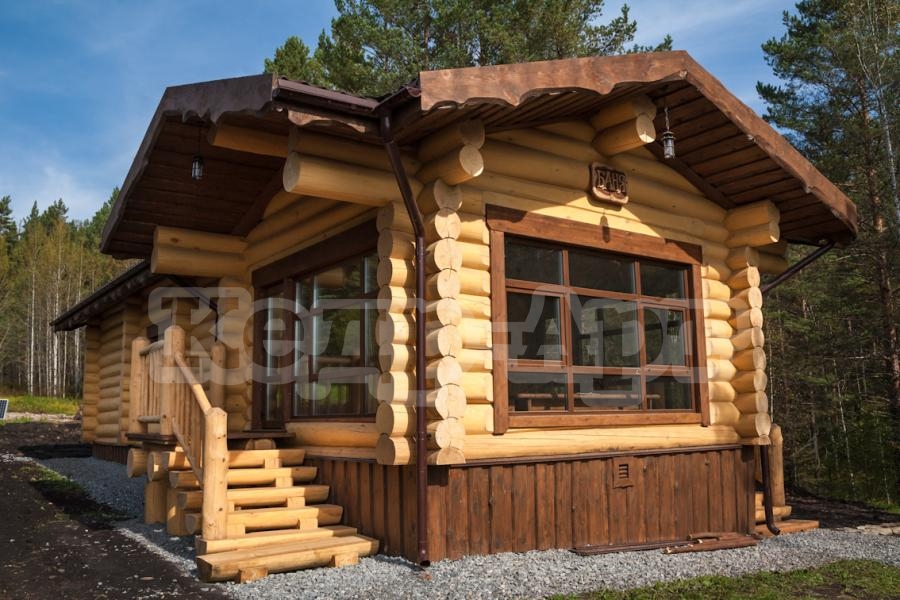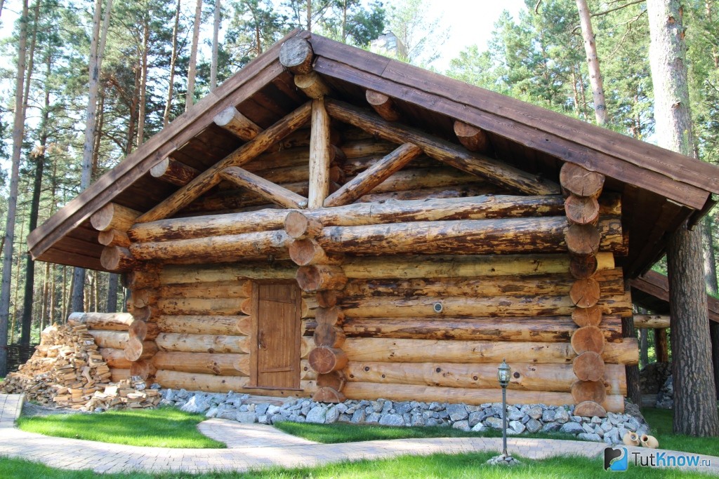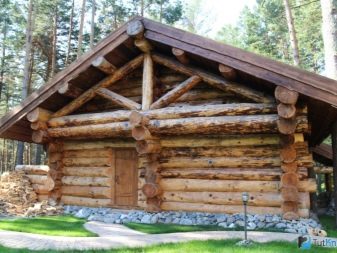 The ends of the logs, protruding 25-30 cm beyond the boundaries of the walls, protect the building from winds and rains. Construction time is minimal, since logs are easily joined to each other. The bath is very durable: the parts do not move and are tightly fixed by the “bowl”.