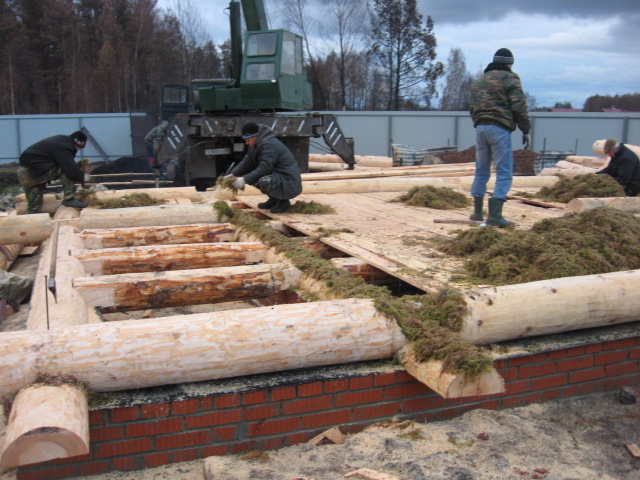 - Between each layer of logs must be placed a layer of insulation - tow, moss, or flax. Insulation is fixed on the bracket.