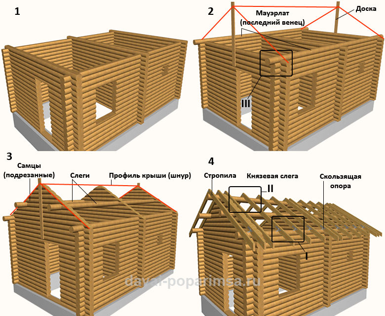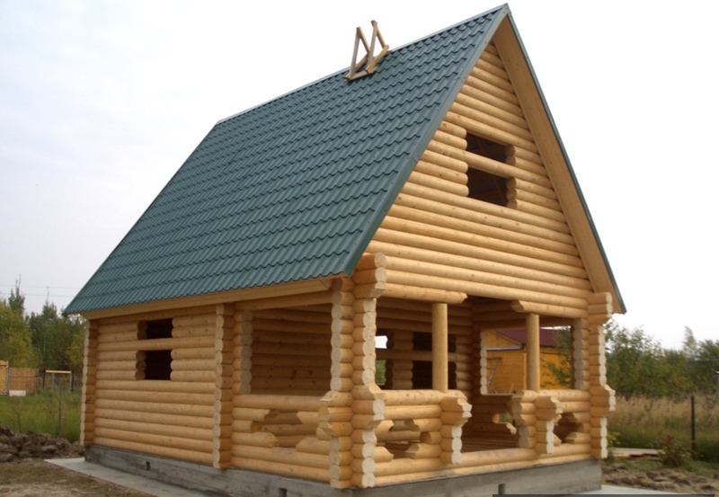 After the construction of the log house is over, it is necessary in the same year to bring it under the roof. It does not matter whether it will be a roof under a temporary scheme or permanent. For bath complex most often use a simple gable roof with the equipment under it cold attic. For this step rafters take equal to 1-1.5 m. If the attic is warm, the width of the step rafters is calculated based on the size of the insulation material slab.