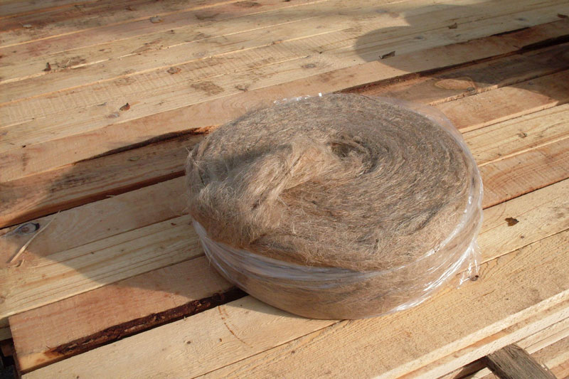 - Fiber from flax and jute - also natural rolled material. It is more expensive, but at the same time its service life is much longer.The fiber is not subject to rotting, rodents and birds are not interested. This material is the best, than it is possible to warm a log bath.