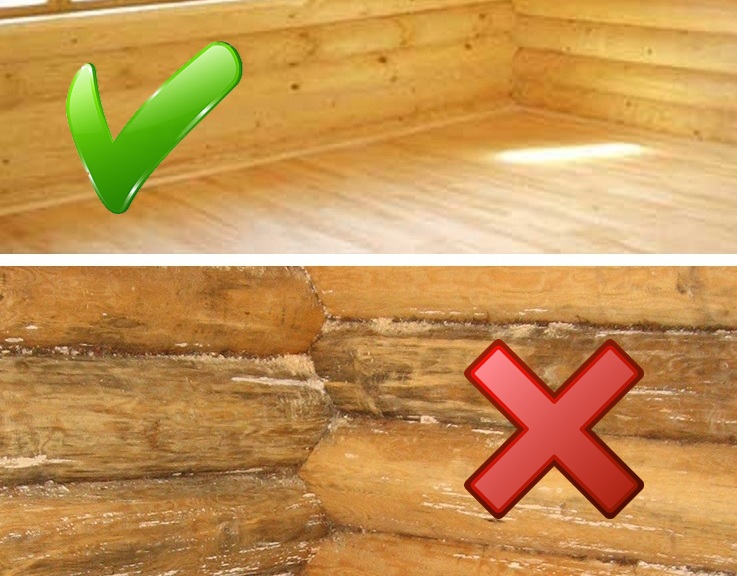 - If the cutting was done by means of a benzo or electric saw, the cut of the log becomes “ragged” and more susceptible to rotting. To avoid this, you need to clean the wood clean with an ax. Pre-cut it between cross-cut.