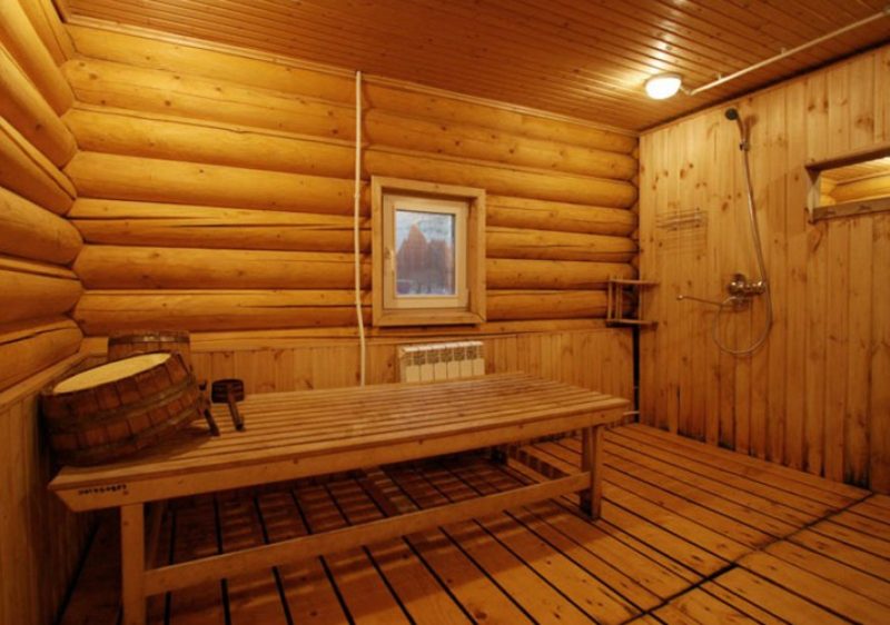 Traditionally, the Russian bath is built as a hut. Inside it is divided into a waiting room and steam room.