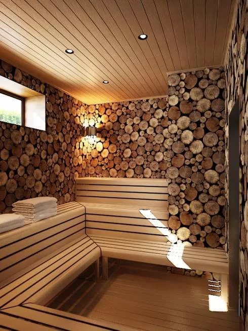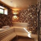 The best option recommended by experts for the interior of the bath is wood. Regardless of what the walls are built from, wood will fill the room from the inside with an indescribable aroma. Conifers are considered the most useful, but they also often use linden, aspen, and oak. In this case, wooden parts must be treated with special antifungal compounds that provide a stable film in conditions of high humidity.