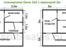In order to improve the convenience of using the bath and comfortable rest, many are considering the option of planning with a terrace. In the summer it will be pleasant to relax on it, to drink fragrant tea after taking procedures in the bath. Typically, it is given an area of 5x1.9 meters, of course, the size of the interior will decrease slightly, but not significant. In this room, you can select a not very large area under the locker room.