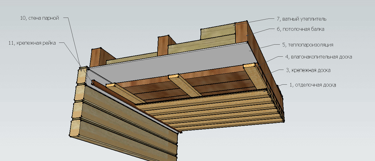 An important point is the provision of high-quality thermal insulation. It is very important that the heated steam kept in the steam room for as long as possible, otherwise it will not make any sense. For this, wooden walls are caulked and glass ceilings are insulated.