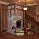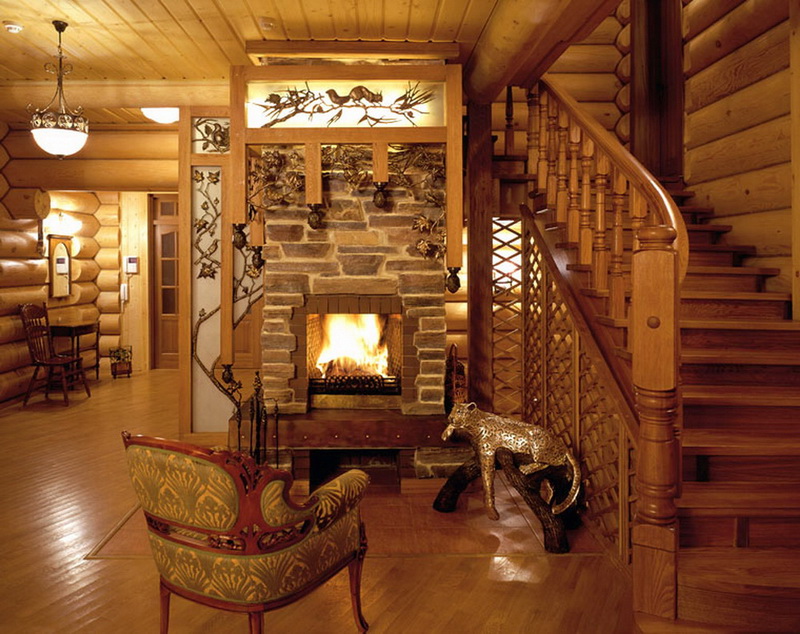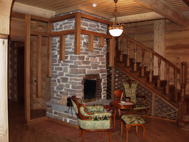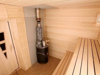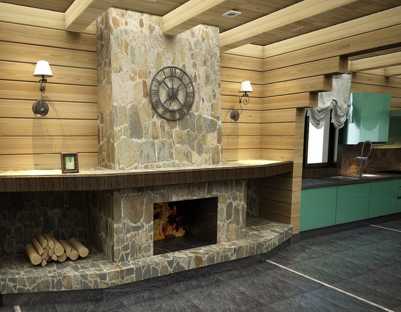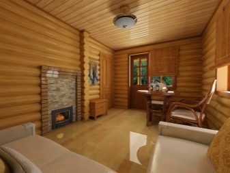 You should also provide heating in the room, otherwise cold outside air when opening the door will quickly cool the room.Even a small fireplace that will make the interior more comfortable and homely will help to correct the situation. But if the plan provides only one stove for integrated heating, then it should be able to heat the whole space.