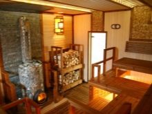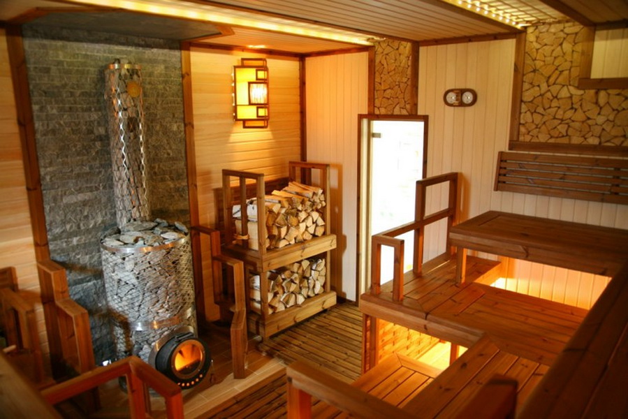 - Steam room - It is the heart of any bath, it should heat up quickly and keep the heat for a long time. Here are the shelves and stove. Typically, the shops are located on three levels, so that you can sit on the first two, and on the third, which is twice as wide, lie. The steam room should be located as far as possible from the front door. Its size depends on how many people will be in it at the same time, and, as a rule, there are no windows in the steam room.