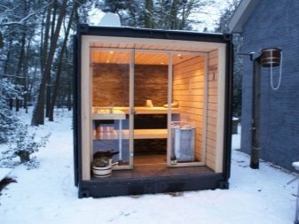 This option is only useful if the bath will be used in the warm season. For a comfortable rest bath can be combined with an outdoor terrace or verandaIn this case, a full rest room with sun loungers and a table can be located outdoors.