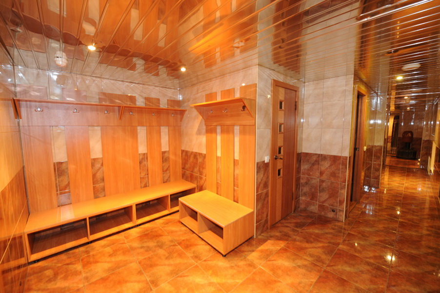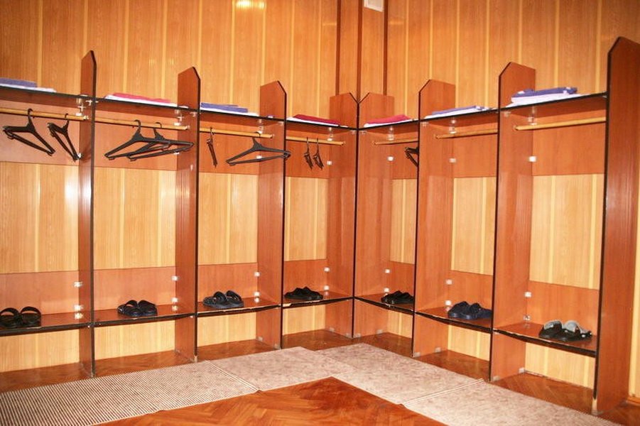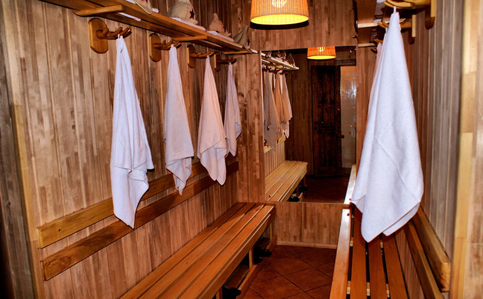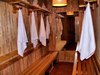 Dressing room is classified as an optional room. She can be in the vestibule or waiting room. But in this case, it is worth deciding where the doors from the locker room will lead: to the washing room or the rest room. In addition, each owner chooses a suitable option for themselves.