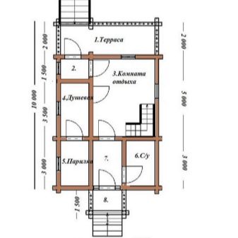 - In a one-story bath there is not always a place for a spacious relaxation room, but in this case, you can equip the terrace or an enclosed veranda for relaxation after a steam room. This option will be appreciated by lovers of a full and comfortable rest in the fresh air.