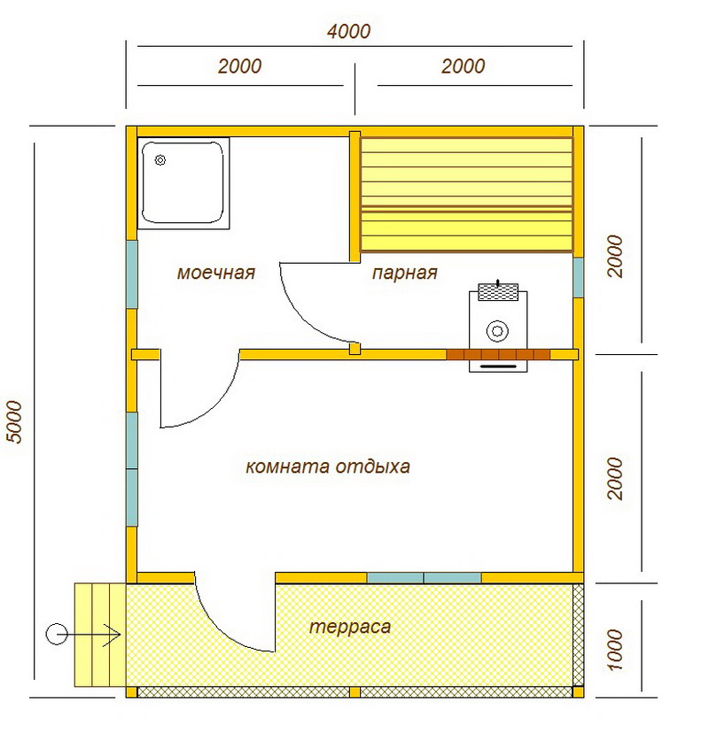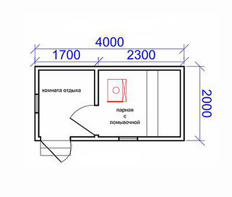 If the area of the site does not allow, then you can build a small bath 2x2 or 2x4, but in this case, the layout will include only the necessary minimum - a steam room and a waiting room.