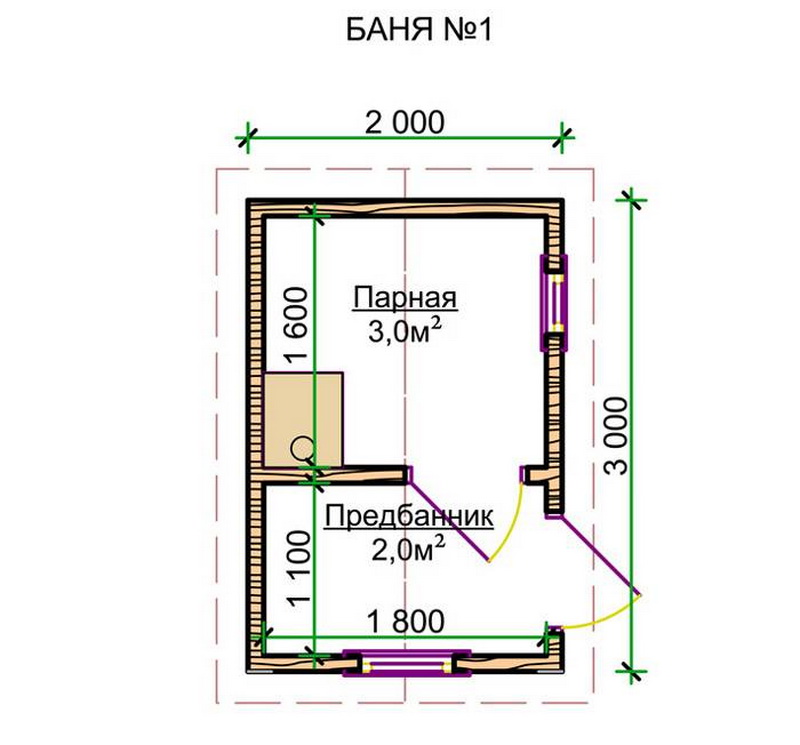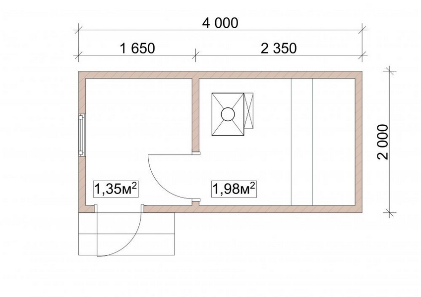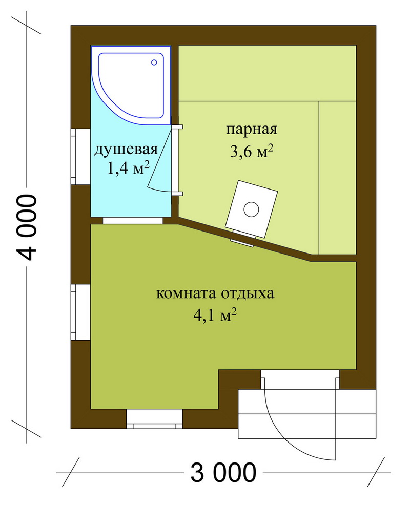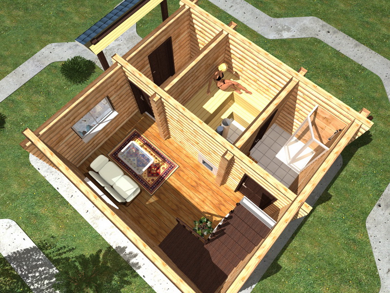 - Dressing room or vestibule - the place where you can leave things before going to the bath. Also here you can store firewood for heating the stove and brooms.