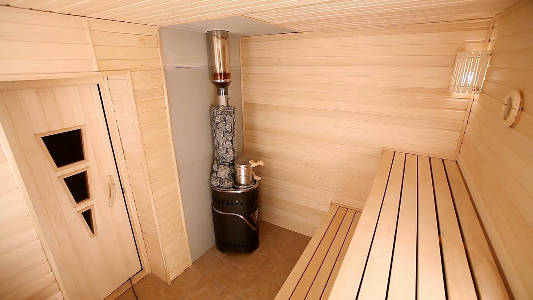 An important role in the bath perform the size of the sauna. For the Finnish sauna, a small steam room is most suitable, in which, as a rule, people sit on the shelves and move a little. It can not be said about the classic Russian bath, in which it is customary to bathe with a fragrant broom, hence minimum required for one person - about 2 m². It is worth adding the dimensions of the stove, and no matter which stove you choose - wood, gas or electric - it’s also important to understand that the distance from the stove to the shelves and wooden walls should be at least 20 cm.