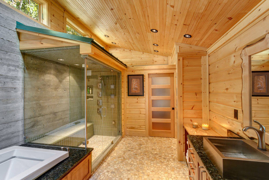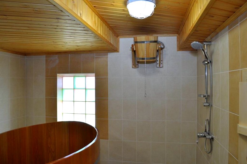 The classic Russian bath involves the combination of steam with washing. But to many, this solution seems inconvenient. If possible, it is necessary to equip the sink and steam room separately. In addition, this is a necessary rule for the Finnish sauna, the humidity in which should not exceed 25%.