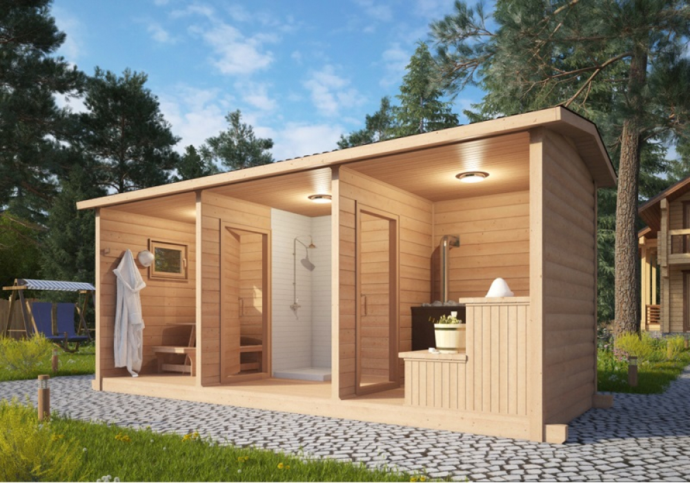 The most important thing is that the internal situation must meet the requirements of fire safety, and all parts must be resistant to high humidity and high temperature. But all natural materials have a high price, so you can use materials that imitate timber externally to save money.