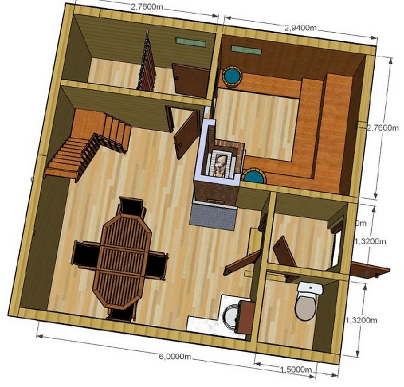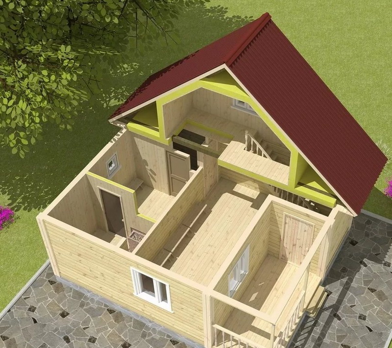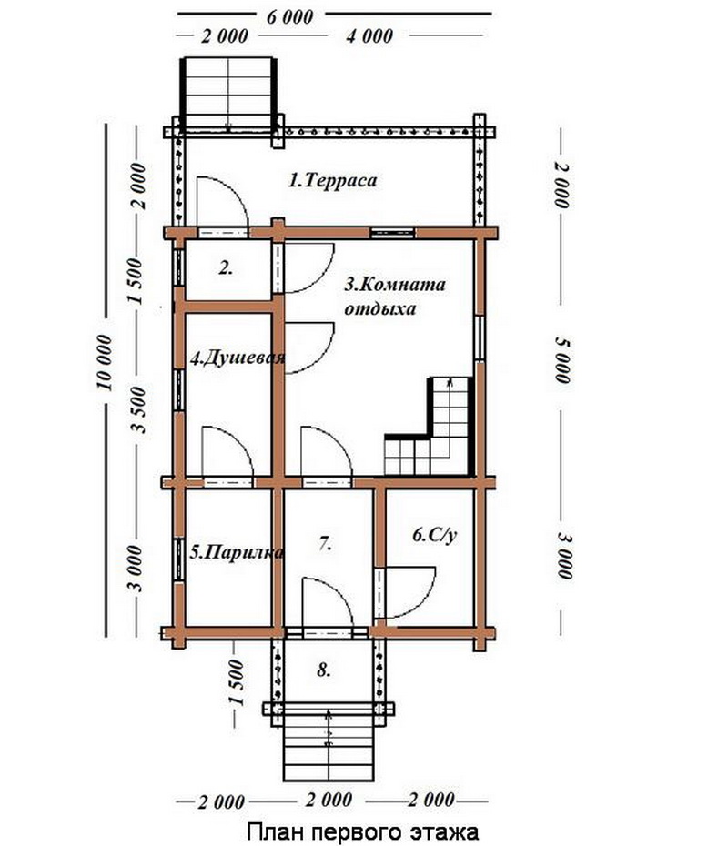 For a large family with children, a bath of voluminous space is needed, especially if it will be used throughout the year. But even with a large total area of about 6x8 and 6x10 meters you should not make the steam room too spacious. It is much easier to heat a room of small size than a space of several squares.