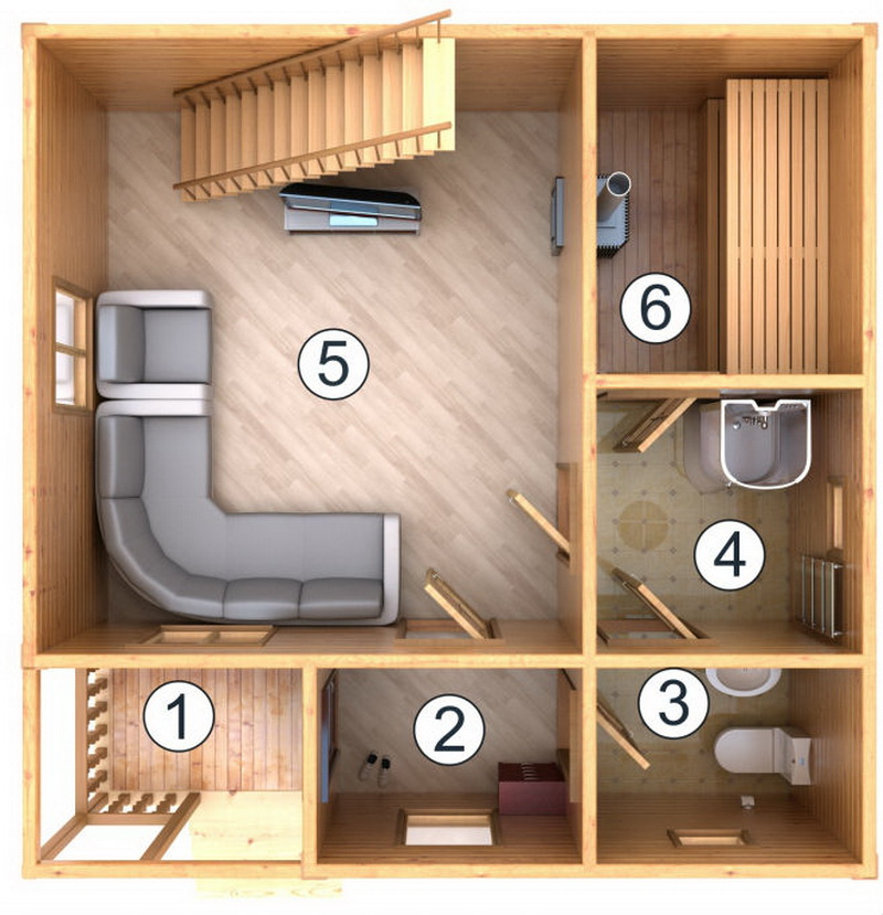 The optimal bath area directly depends on the number of people who will use the steam room at the same time. The desire to save on building materials and wood for heating is understandable, but do not allocate too little space for the steam room. There is a possibility that it will quickly overheat, and it will be uncomfortable to be in such a small steam room.