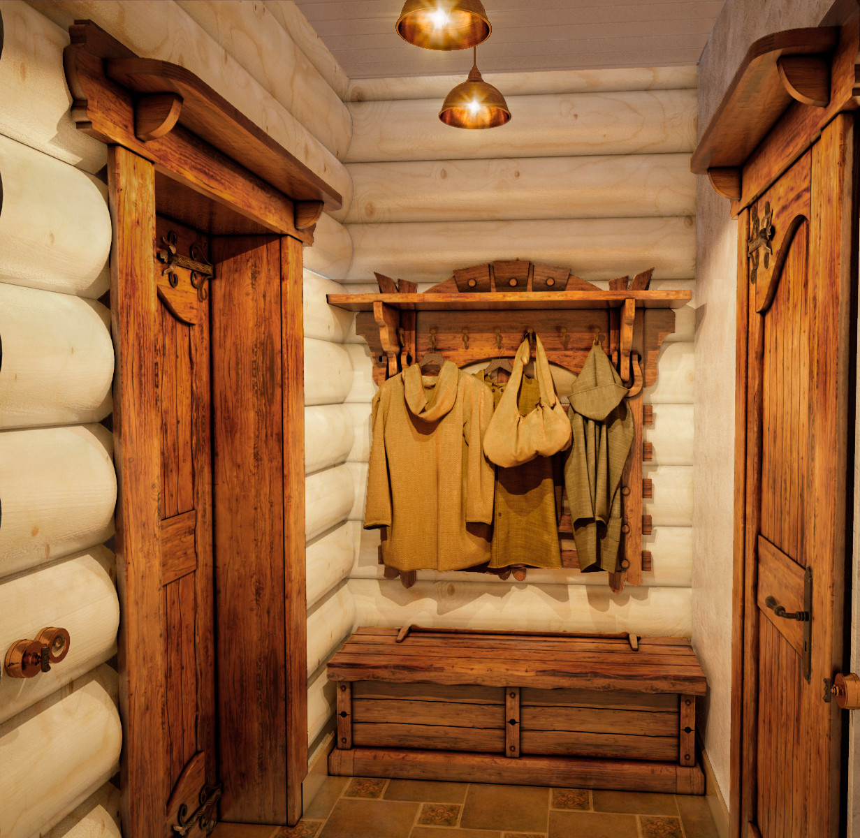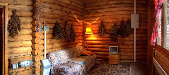 Brooms, basins, hats and other necessary accessories for bath procedures are considered the most important decorations of a traditional bath. To decorate the walls, you can choose hunting trophies, paintings, place your own furniture and accessories.
