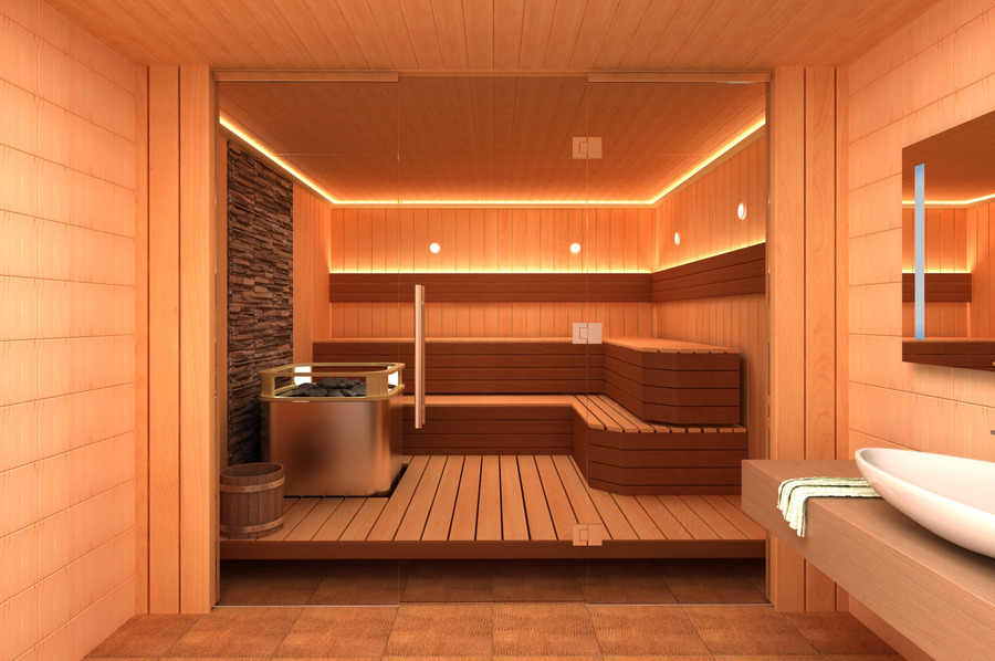 If the area allows, then you can also place a rest area, a toilet and a place for a contrast shower.