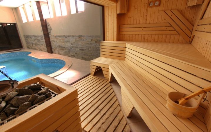 The most successful project can be considered if the room with the pool is a walk-through and it has three doors at once leading to the rest room, steam room and washing room.