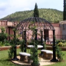 - Gazebo - gazebo, which has a round shape and looks very good on a hill. You can use a concrete block to raise the structure above. Stairs and railings made of metal are used as decorative elements. Placing such a gazebo in a picturesque place, you can get real pleasure from being in it. There are two variations of the structure: closed and open, both protect from sunlight and do not interfere with enjoying the view.