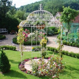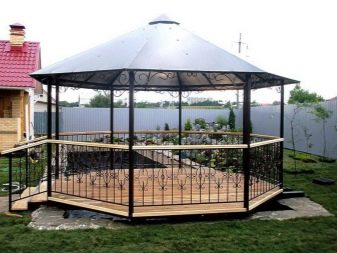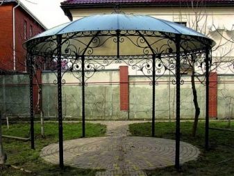 Having decided on the look of the gazebo, you should also think about the form that it will have. Most often, metal products are made square, round, oval, rectangular, and also in the form of a polyhedron. For each option has its own advantages and disadvantages, the possibility of their use. First of all, you need to look at the site, determine the place for the new structure, understand exactly how it will be combined with the house or nearby buildings, how it fits into the nature of the area.