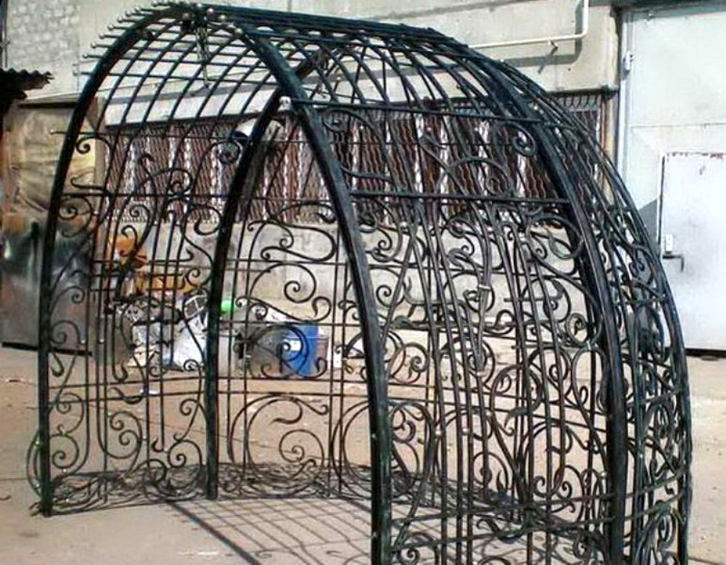 To make a beautiful and figured product, these masters prefer a soft alloy. You can do the work on the machine or with your hands. The machine needs a round and square profile and a sheet for stamping, for hand-forging in the latter version is not necessary. To create a beautiful and high-quality gazebos most often used both technologies.
