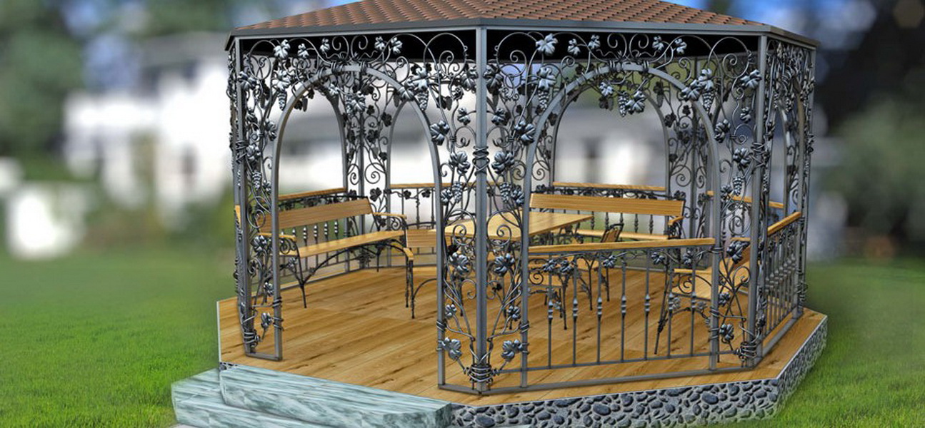 After examining the characteristics of the material, you can quickly determine whether a forged gazebo is needed at the site or not, and you can choose the design option with the help of a variety of finished products.