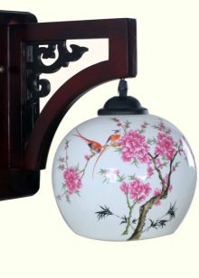 The Chinese interior is created according to the principle of harmony of 5 elements, the designers can create a window to the green garden with the help of a painting, if you need to enter the elements of the earth. The luminaire in the Chinese interior is a symbol of the energy of fire; according to the system of elements, the air inflates the fire. Therefore, the Chinese lamps are volumetric and airy. The cylindrical shape of the ceiling and ornate leg is widespread. Ceramic sconces are the energy of the earth, such products are made by the Chinese for the bathroom.