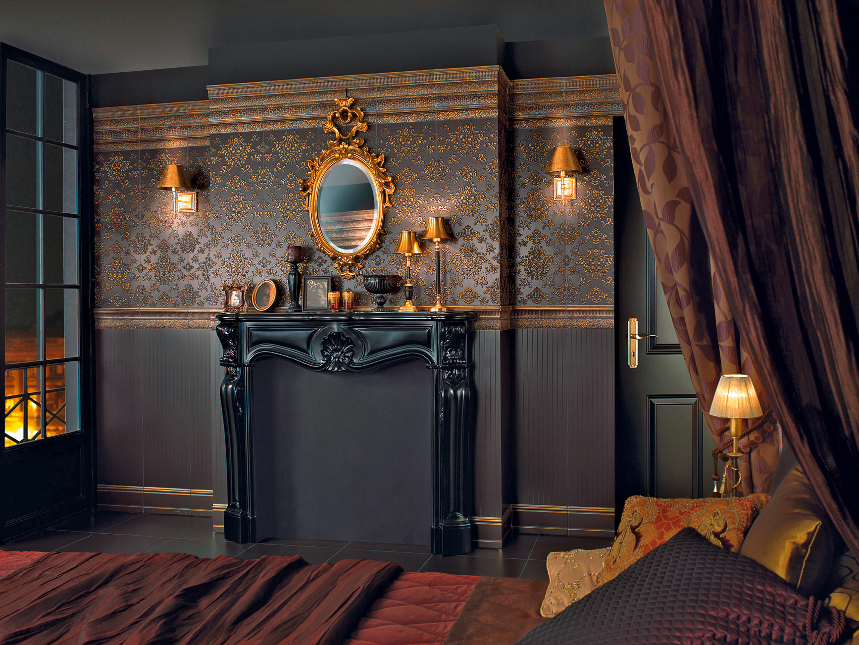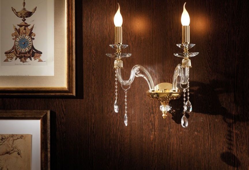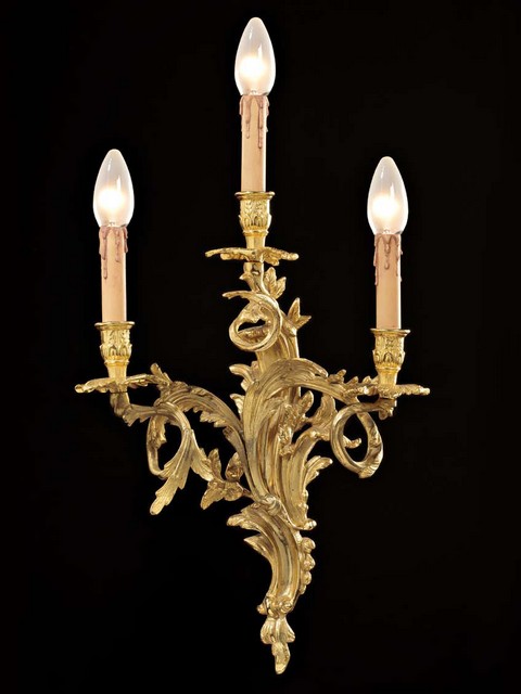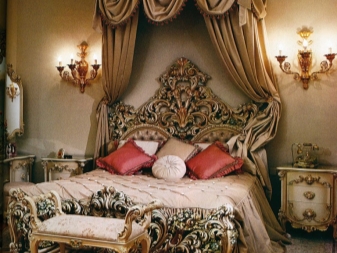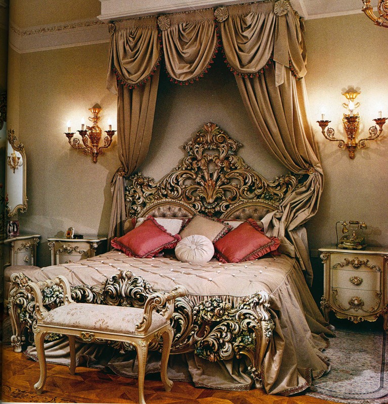 - Baroque wall chandeliers in harmony with the bends of carved headboards