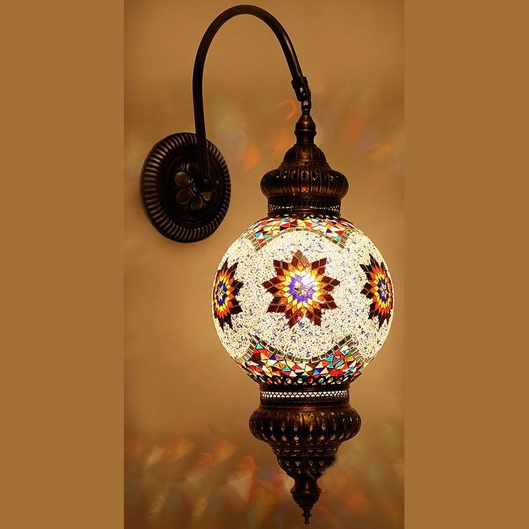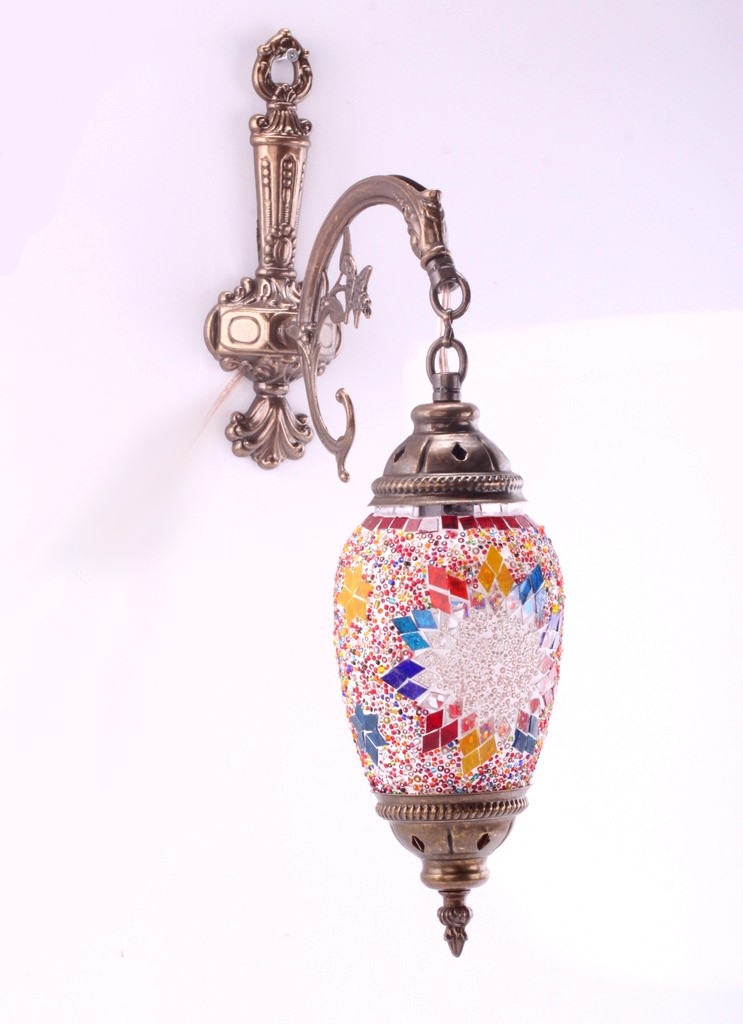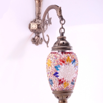 - Turkish mosaic wall chandelier on a metal base will give a muffled light, it is better to pick it up to the bedroom in warm orange-yellow tones.