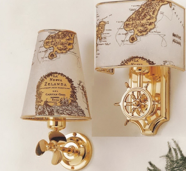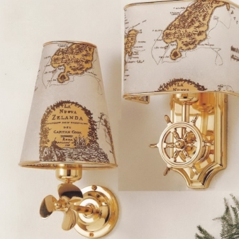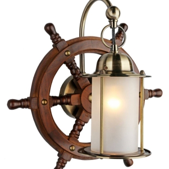 The lamp for the marine decor should be decorated in the ship's theme, because the nautical style is characterized by the decoration of the interior with parts imitating the ship's gear: a steering wheel, a net, a rope, an anchor.