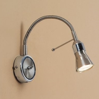 Techno - is a modern interior solution, which is characterized by clear rectangular shapes, gray, silver color, matte surface. Typical wall lamps for techno - in the form of a square and a rectangle of metal with cold light. Their advantage is a relatively low price and durability. Also, techno will fit a streamlined, functional sconce with a bright halogen lamp, a flexible snake leg will allow you to direct the light at the right angle.