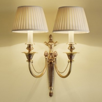 The imperial style of the beginning of the 19th century was initially used to decorate palaces, in the 20th it moved to city apartments. For the interior in a designer style, the Empire style needs antique furniture, fabric upholstery, draped curtains. The function of the Empire style chandelier is a demonstration of luxury and beauty. Empire style sconce - it could be: