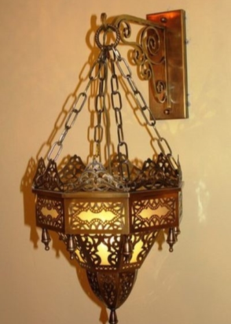 Moroccan-style wall chandeliers are usually made with stained glass stained glass windows and mosaics.
