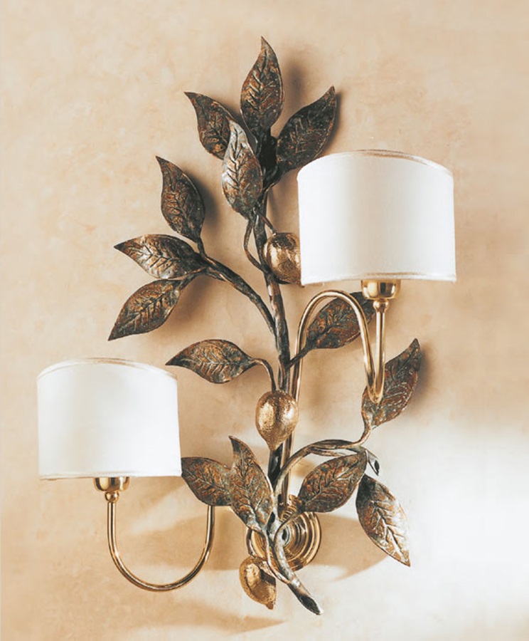 Italian sconces are distinguished by a combination of forged decorative elements made of metal and a lampshade of simple shape, which can be made of silk or glass.