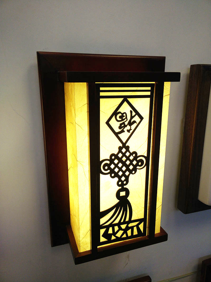 - rectangular lamp made of MDF, processed under the tree and ceiling of papyrus paper;