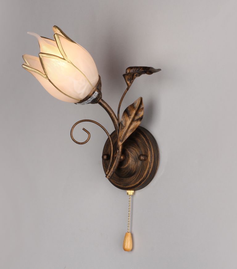 However, it is with such wall chandeliers that your interior will acquire a stylistic unity, and will not look like a cluster of things from different eras. Such chandeliers are good to buy in country houses. Their advantage is in low price. And if you need to create comfort with a coarse lamp, you can sew a fabric shade onto it or buy a wall lamp with a lamp shade.