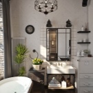 An interesting option would be the location between the two lighting wall devices of a small shelf. This design is especially advantageous with candlesticks.