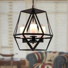 - Lamp - one of the most common types for a loft-style room. Such options are made under bronze, metal or other materials. It is not necessary that such a “street attribute” will look rude in the room. Some variations of such plafonds are elegant weave or clear glass.