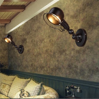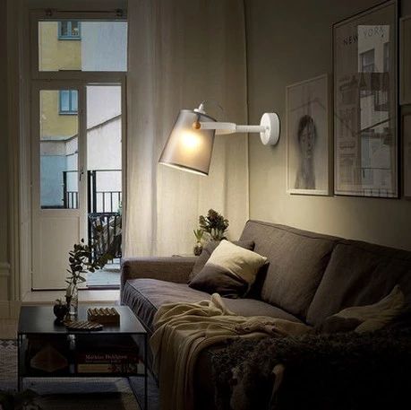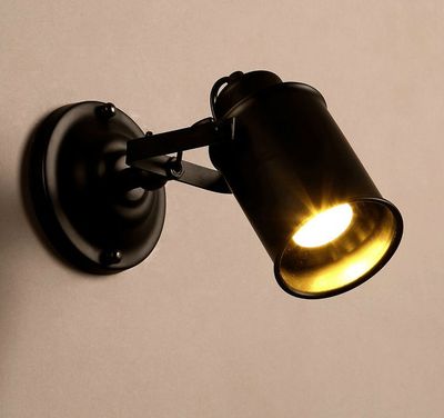 - Colored plastic Used to combine a loft-style wall lamp with a vintage style. In rooms of this type a lamp is used on a long leg with a colored canopy.It is at a great distance from the wall and illuminates the room from above.