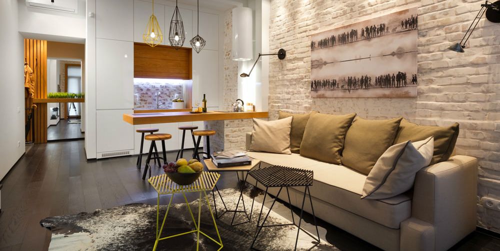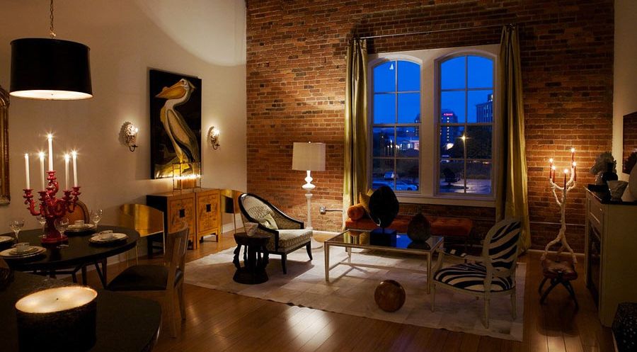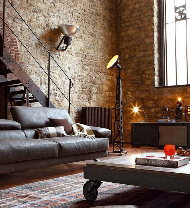Since the room decorated in the style of a loft, usually quite large, it is necessary to divide it into zones. Lighting plays a significant role in this division. Wall lights can play an accent role for any one zone or be located at the place of transition from one part of the room to another.