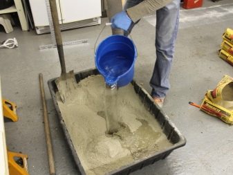 When mixing by hand, it is important to adhere to the necessary ratio, so that the mixture is homogeneous. At the same time, sand and cement are mixed in a separate container and only in a dry form. After the mixture acquires a uniform gray color, water is poured into it in small portions using a funnel. The resulting mixture is thoroughly mixed to a uniform consistency.
