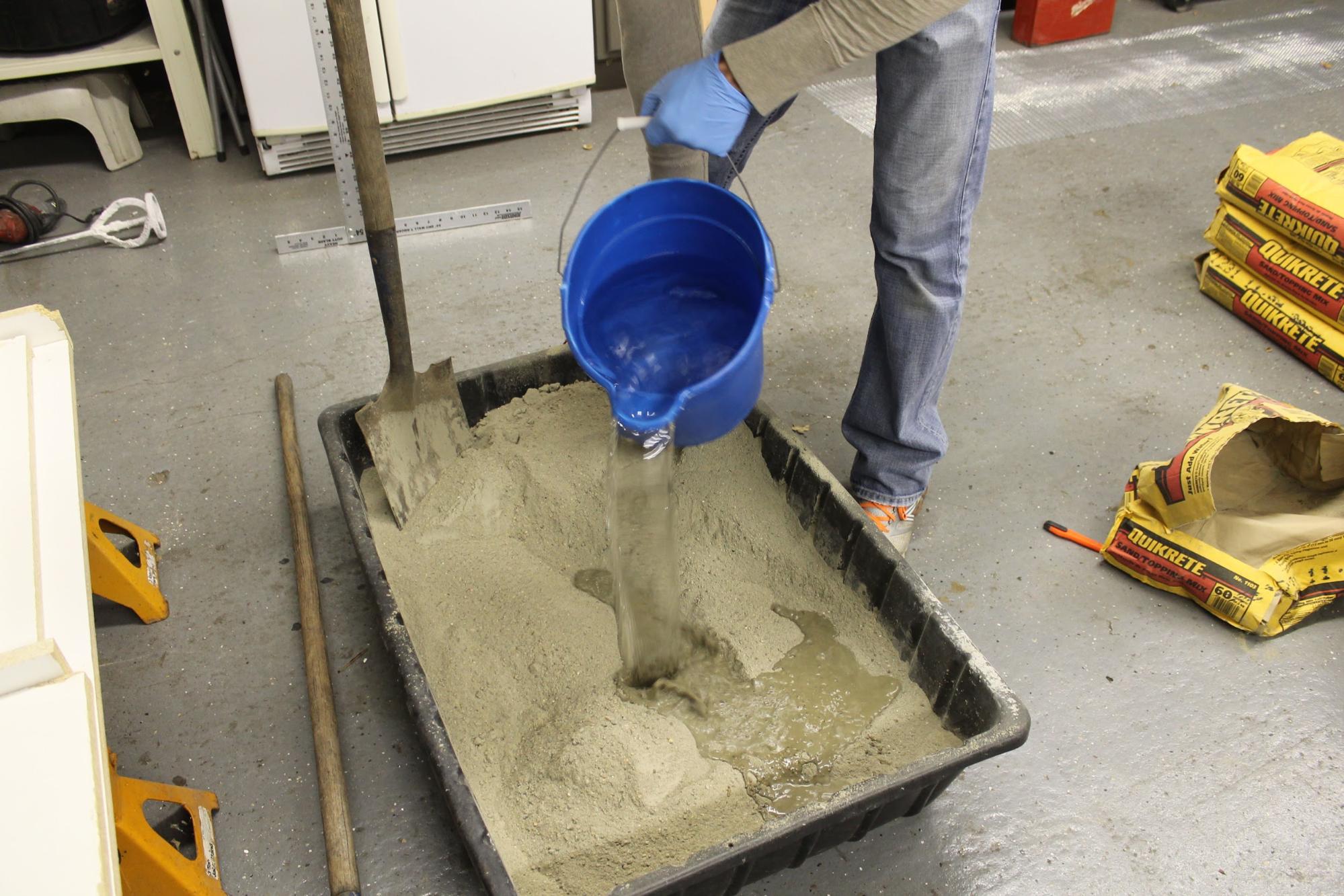 Pour into a concrete mixer 1/2 volume of water, add a little detergent for better plasticity, and then pour sand and cement.