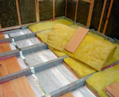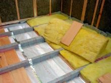 Sometimes a vault is created from an I-beam supplemented with wooden shelves and a wall of oriented plate. In the attic floors the space between the beams is filled with insulation and vapor barrier from the ceiling of the room. Warming of the perimeter is usually made of polystyrene foam.