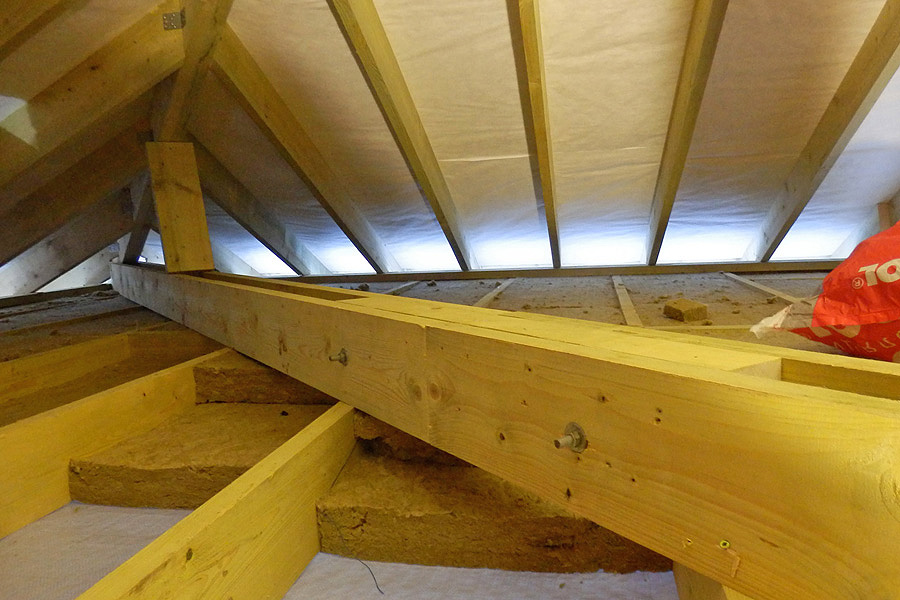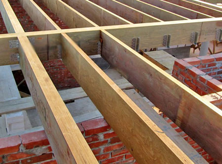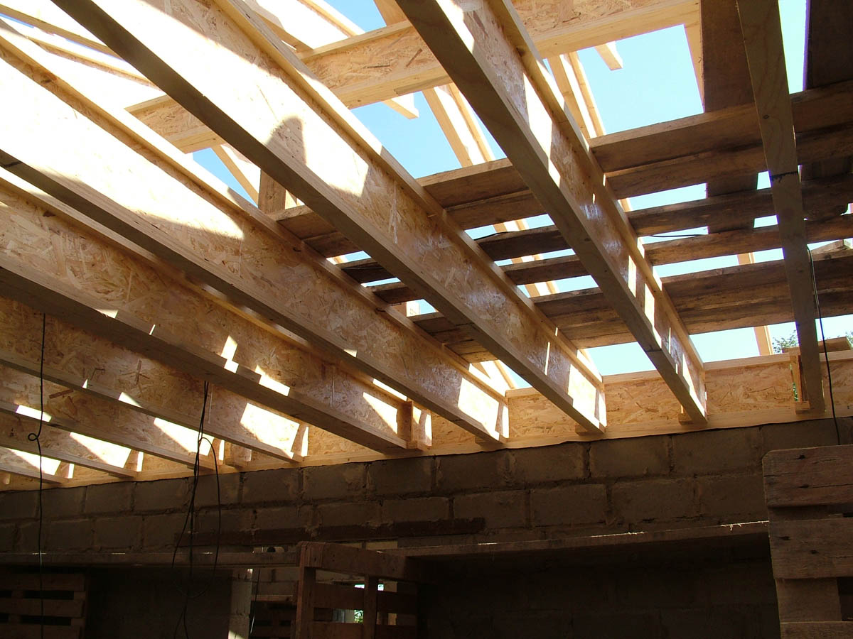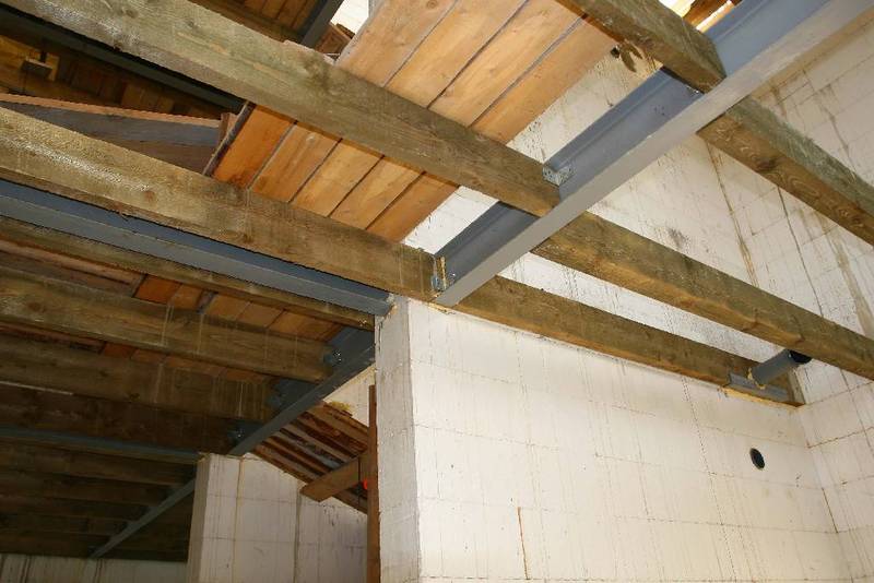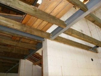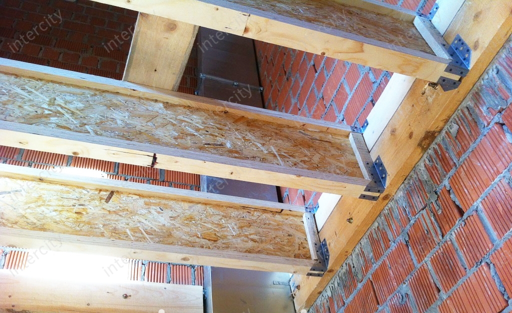 Solid beam elements are limited to the length of the span; therefore, they cannot be longer than 500 cm. Glued laminated timber is sometimes three times longer, replacing it with boards that, when joined, are placed on an edge. Occasionally used rounded timber or I-beam construction. In brick buildings can be mounted metal beams based on: