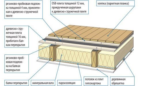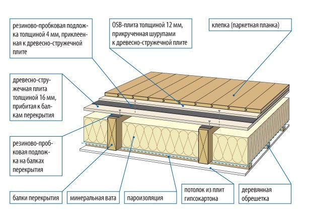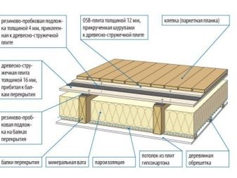 The frame house also has its own nuances of creating an attic floor. If a residential attic is equipped above it, there is no need for waterproofing, but it is required to prepare a high-quality vapor barrier.Under attics that are not heated, they use much more insulating coatings, arrange them in a special way and maximize thermal protection. Under the residential heated premises, the lags and the front floor are separated by a rubber or cork substrate to maximize sound insulation.