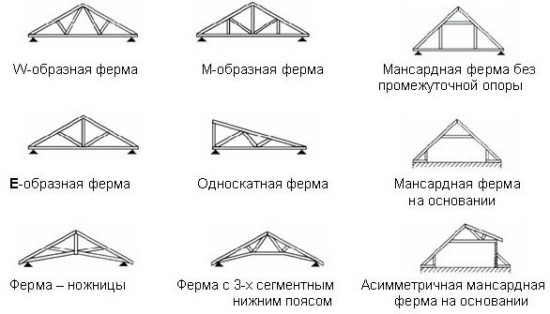 The truss system must be rigid, because shear and thrust forces cannot deform the structure. Under the scheme, this device resembles a triangle. From all types of wood coniferous breeds of the highest grades with a maximum moisture content of 17% are best. It is recommended to avoid blanks containing knots and cracks. Solid deciduous trees are used for: