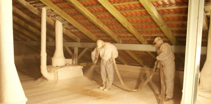 Thermal insulation with this material will last half a century, but the cost of such a solution will be more serious than using other heat insulators. At the same time, such insulation is carried out by spraying, and to create reliable thermal insulation, a thin layer of polyurethane foam is needed. It easily covers any surface. The design is obtained without seams, which ensures the reliability of heat preservation in the house.